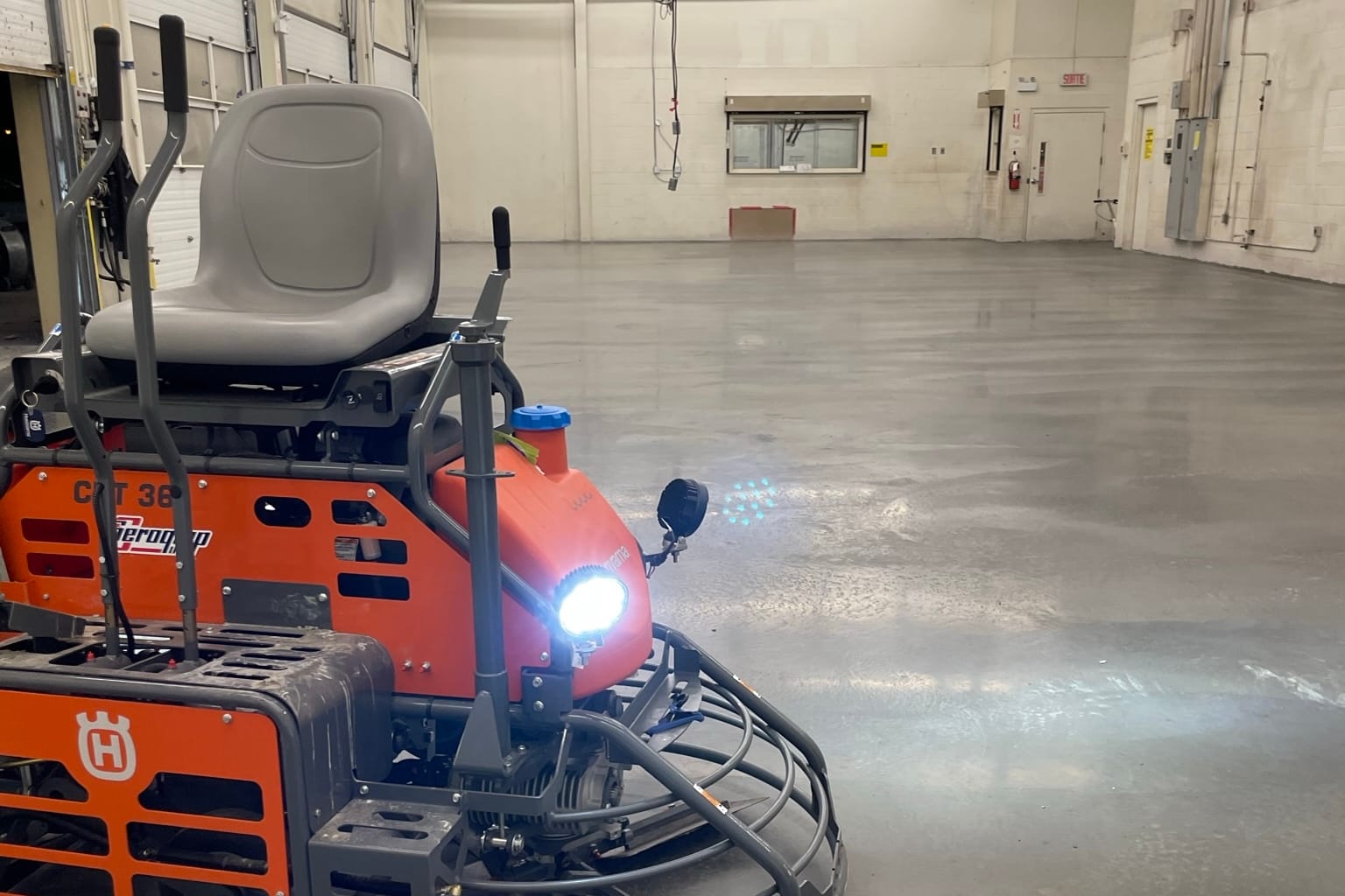 Parfait pour un garage ou le bâtiment commercial, le plancher de béton au fini poli à la machine vous offre un plancher solide avec une apparence haut de gamme.